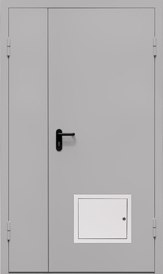 Полуторапольная пожаростойкая дверь DU005 отделана серым полимерно-порошковым покрытием, укомплектована стыковочным узлом. Предел огнестойкости равен одному часу.