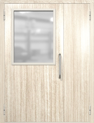 • Двупольная противопожарная дверь с широким стеклопакетом, ручкой-скобой и МДФ ДПМ(О)-02/60 (EI 60) DM096