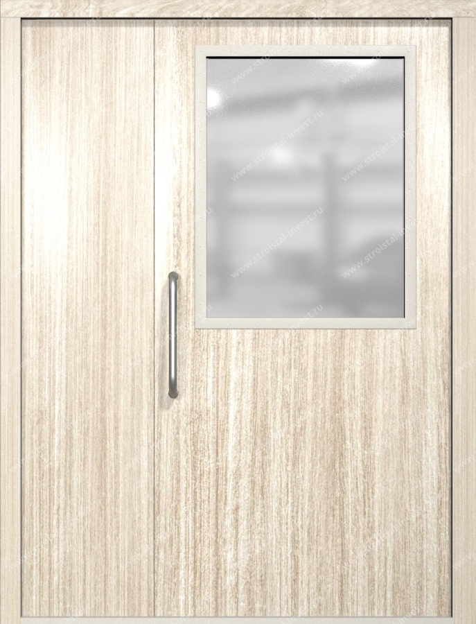 Двупольная противопожарная дверь с широким стеклопакетом, ручкой-скобой и МДФ ДПМ(О)-02/60 (EI 60) DM095
