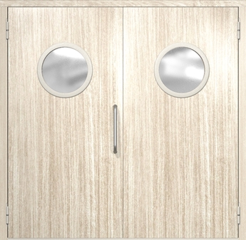 Двустворчатая противопожарная дверь с круглым стеклопакетом и МДФ ДПМ(О)-02/60 (EI 60) DM036